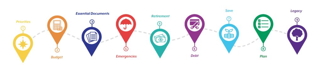 Step 1 – Priorities: Determine what life priorities matter most. Instead of starting with numbers, start with purpose. What kind of life are you trying to build? What responsibilities has God entrusted to you right now — family, career, generosity, future security? Write down your top three goals for the next five years and let these priorities begin to guide how you spend your time and money. When your financial decisions reflect your deepest values rather than impulse or comparison, you financial journey gains direction and momentum.